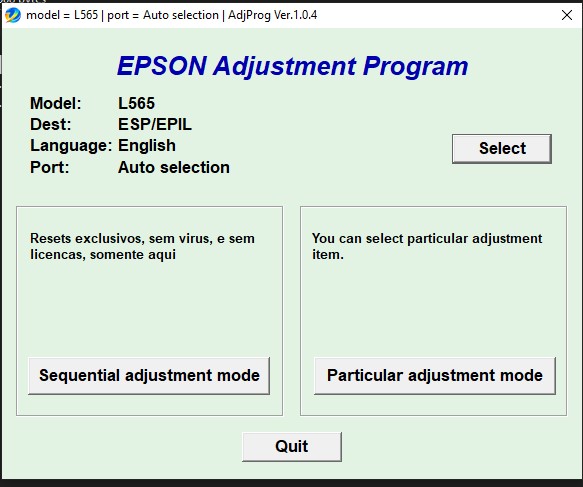 Epson L565 Resetter – Adjustment Program to Reset Ink Pad Counter