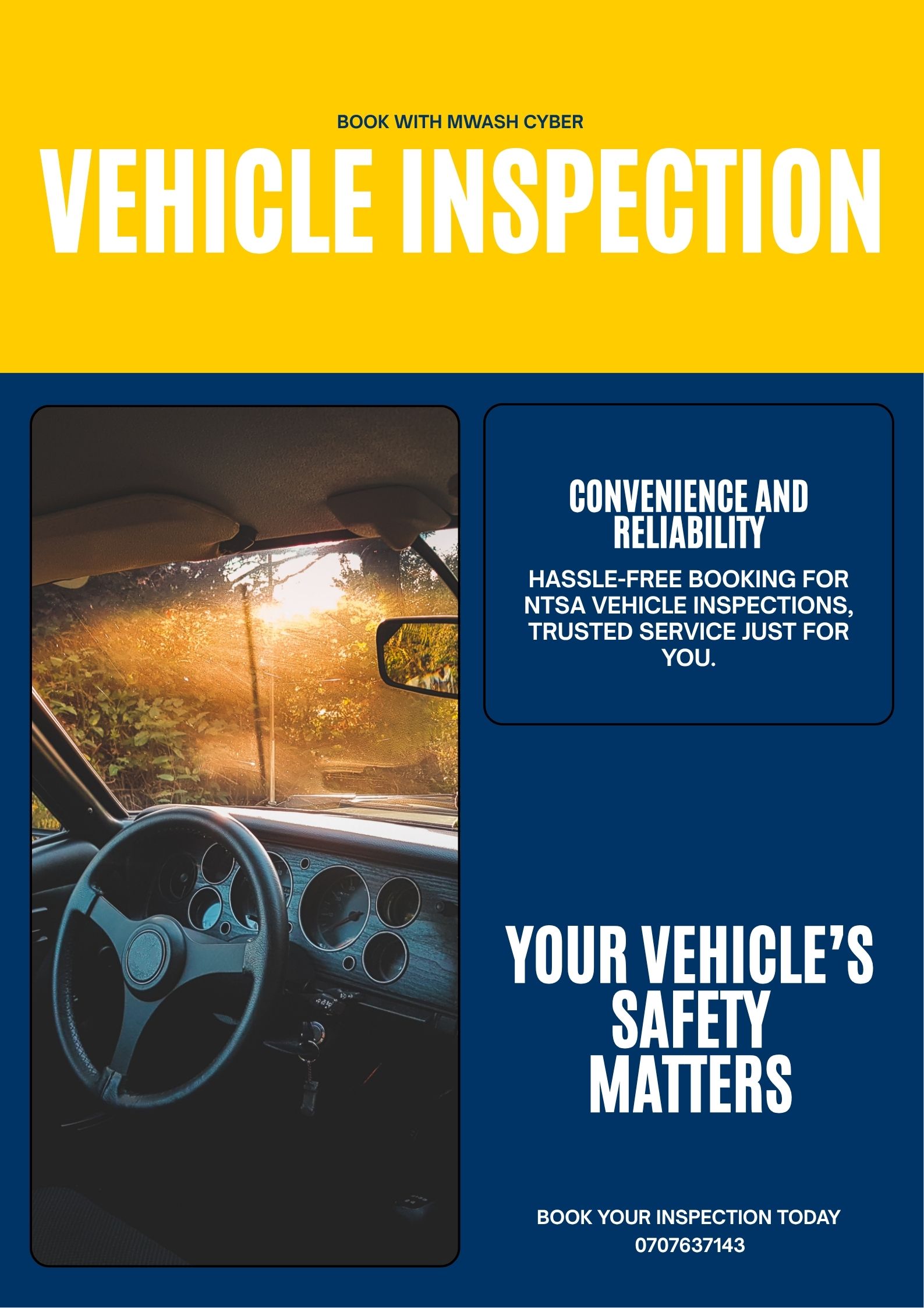 Skip the long queues and complex online processes! At Mwash Cyber, we make it simple for you to book your vehicle inspection with the National Transport and Safety Authority (NTSA).